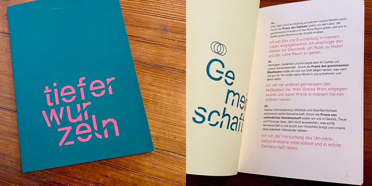 Bei den conventiondays 2025 sind für ein Jahr einige Dutzend ccler:innen in ein Jahr des Tieferwurzelns gestartet. Ursprung ist ein Sehnen danach geistlich tiefer zu gehen und dabei miteinander unterwegs zu sein.. Entstanden ist ein einfaches Begleitheft mit 12 prägnanten Thesen bzw. Bestreben in den Bereichen Ich, Gemeinschaft, Kirche, Welt. Die Teilnehmenden haben sich eine bis vier davon für die kommenden Monate ausgewählt und treffen sich in Kleingruppen online oder vor Ort, um einander zu hören, zu staunen, zu ermutigen.